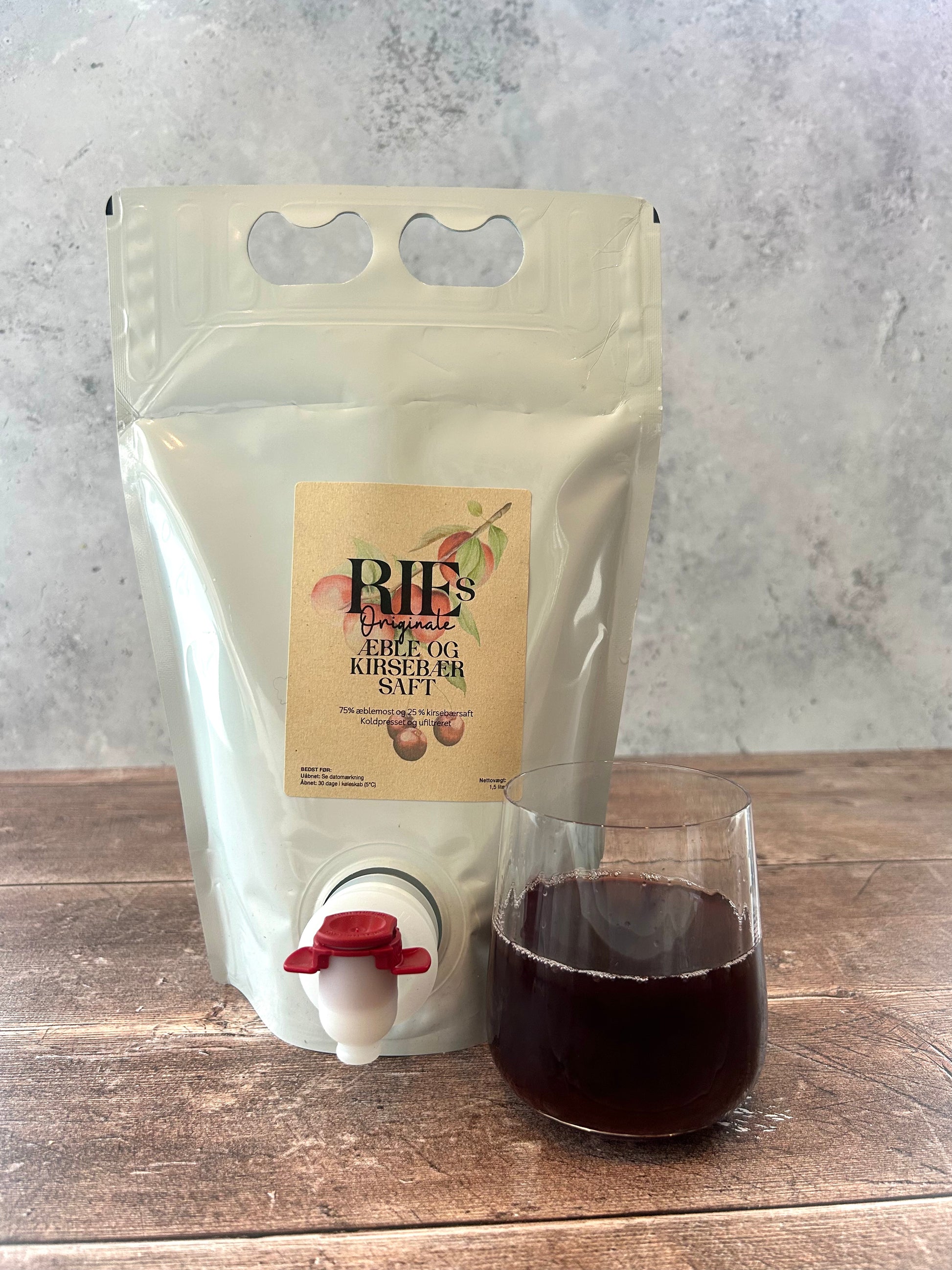 Ingredienser: 75% æblemost, 25% kirsebærsaft (fra danske æbler og kirsebær)